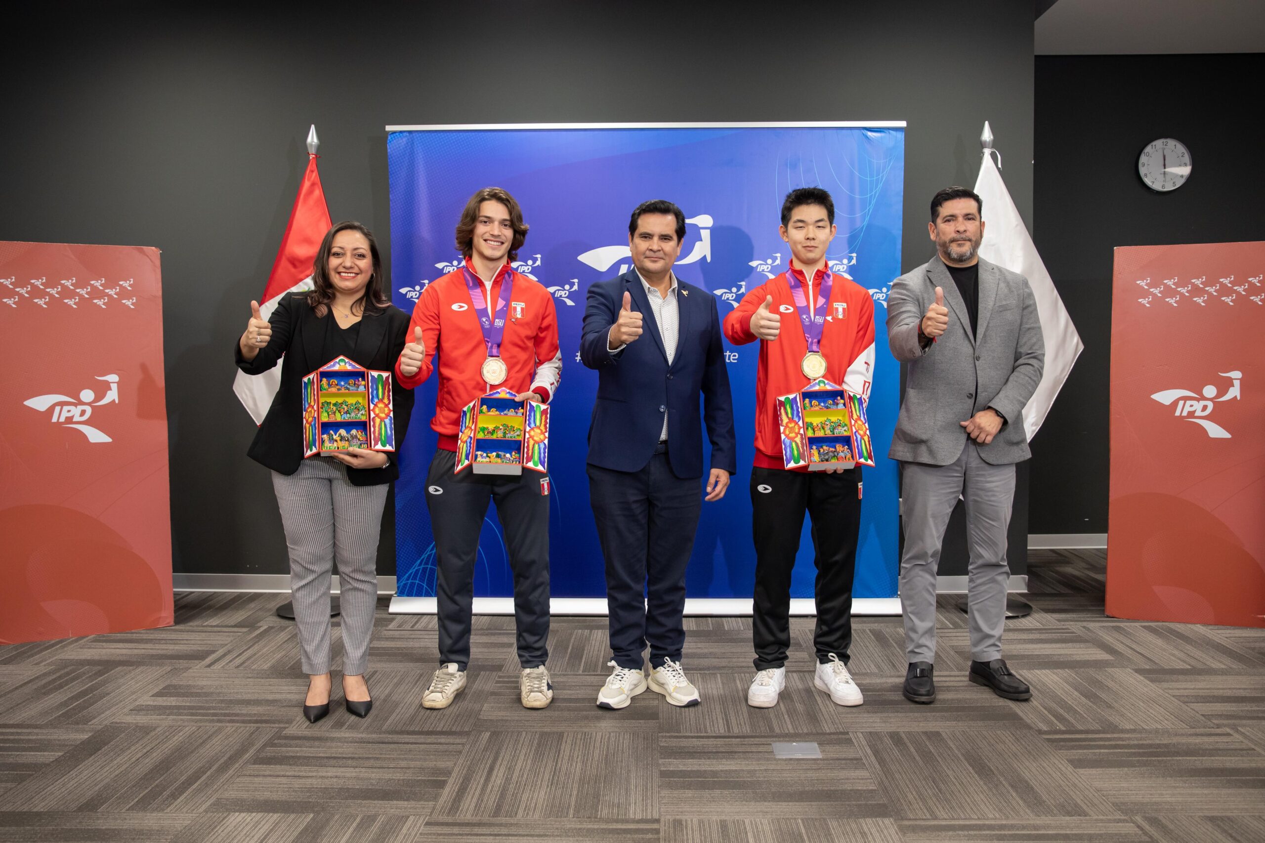 “El Perú está de fiesta y nuestra bandera flamea en lo más alto. Gracias a Renzo y Lukas por llenarnos de orgullo. 41 países han visto su talento y la sed de gloria de todos los peruanos representados en dos jóvenes de 17 y 18 años. El Perú con orgullo se va convirtiendo en una gran potencia del deporte. En nombre de la presidenta Dina Boluarte quiero anunciarles que desde ahora son parte del Programa Lima 2027, donde recibirán un apoyo por tres años con una menor subvención mensual, el mejor seguro privado y recursos hasta por 72 mil soles para campos de entrenamiento y torneos internacionales para subir al podio en los Juegos Panamericanos Lima 2027, donde tendremos nuestra mejor participación de la historia”, manifestó el presidente del IPD, Federico Tong Hurtado.